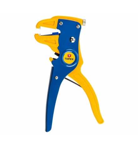 TOPEX automatic wire stripper, length 175 mm, working range 0.5 mm² to 6 mm². It allows range and pressure adjustment. Ergonomic handles fit well in hand for better work comfort. Additionally equipped with a cutter for cable cutting. TOPEX brand is oriented towards DIY enthusiasts.