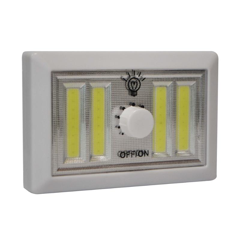 Dimmer 4COB Switch Night Light provides up to 200 Lumens of bright lighting. Suitable for Closet, Kitchen Under Cabinet, Shelf, Baby Nursery, Bedrooms, Closets, Hospital Beds,Bathrooms etc. Great for Children - Safe for a kid's room or a baby nursery because there is no electrical wiring. ∙ With adjustable intensity for achieving desired light ∙ Emergency light in case of black out ∙ With Velcro tape & Strong Magnets for easy mounting anywhere · Batteries included