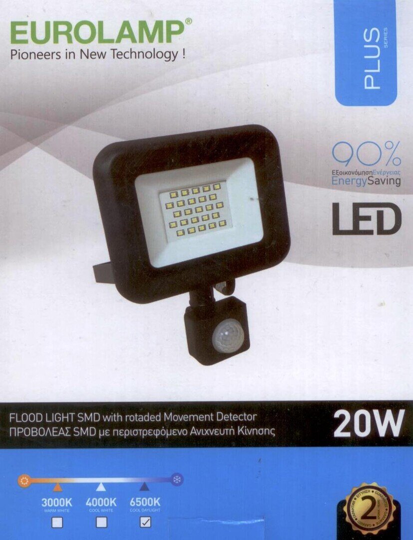 EUROLAMP FLOOD LIGHT 20W/2100L/6500K WITH ROTADED MOVEMENT DETECTOR