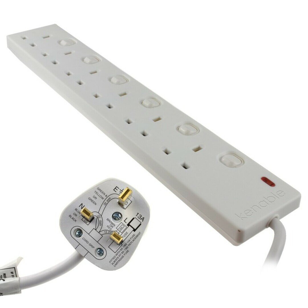 FERRARA 147-62314 6-socket socket UK 13A with 6 ground switches and 3m cable 3x1.25mm