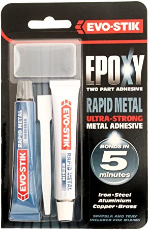 Evo-Stik Rapid Epoxy Adhesive is super strong and long lasting. It has been formulated to bond with virtually any material. It can be used with metal, wood, masonry, ceramics, glass, leather; fabrics and most plastics.