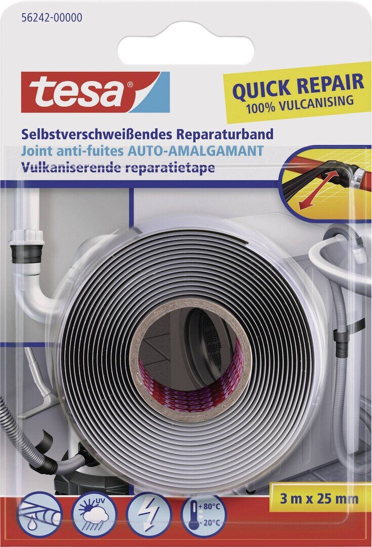 Repairing tape for short-term repairing, sealing and insulation. It can also be applied to wet surfaces. Weather and UV resistant. Reliable electricity insulation in house.