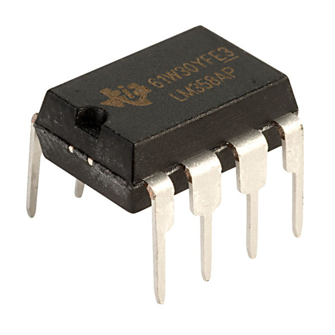 MC4558 is a high-performance monolithic dual operational amplifier. The circuit combines all the outstanding features of the MC1458 and, in addition, possesses three times the unity-gain bandwidth of the industry standard. The IC is constructed using gated P-channel MOSFET at the input; so, as to provide a very high input impedance. The IC has a wide range of working voltages and directly interfaces with both passive and active electronic components; making it ideal to be used with any device. 8-pin