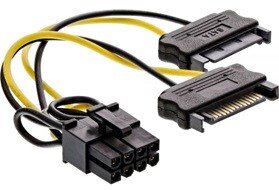 CABLE-SATA-26628D INLINE 26628D POWER ADAPTER 2xSATA TO 8PIN FOR PCI-EXPRESS PLUG 0,15m