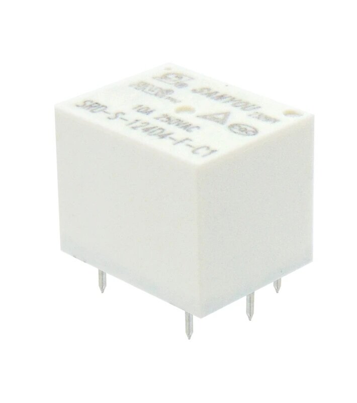 A 7A 12V DC miniature PCB relay that comes in a baby sugar cube case and is suitable for general applications where high reliability and high switching capacity are needed, but where VDE approval is not required.