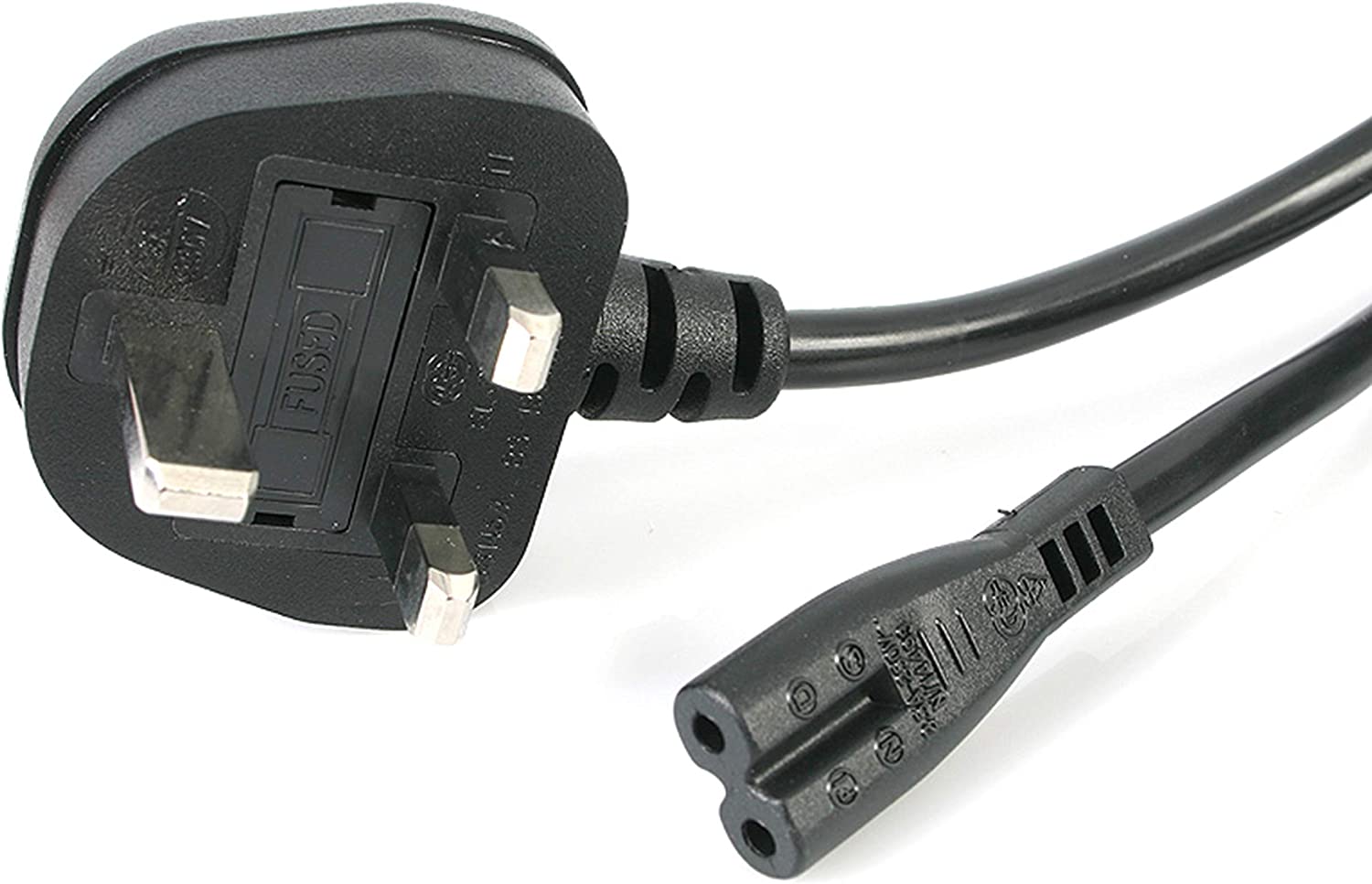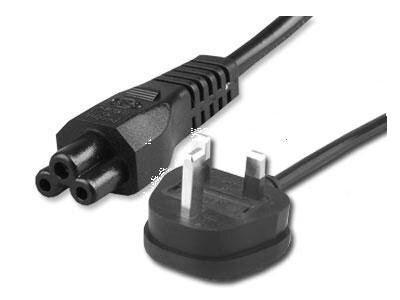Power cable 2mtr UK male plug to IEC C7 "figure-8" angeled female socket