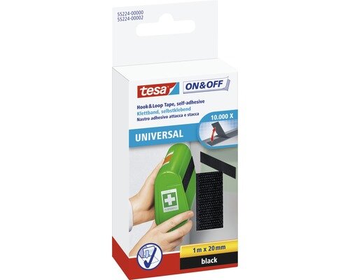 Tesa® On & Off General Purpose Sew & Stick on Tape is a versatile hook & loop tape made for fixing fabrics to hard surfaces. It is the perfect match for home textiles, decorations and clothing. The tape consists of a hook tape equipped a with self-adhesive backing and a flexible fleece tape that can be sewn on. Use this highly versatile tape to replace hook & loop closures on shoes and textiles. Stick it onto chairs to keep pillows from moving. Feel free to detach and reattach any object made of fabric more than 10,000 times.