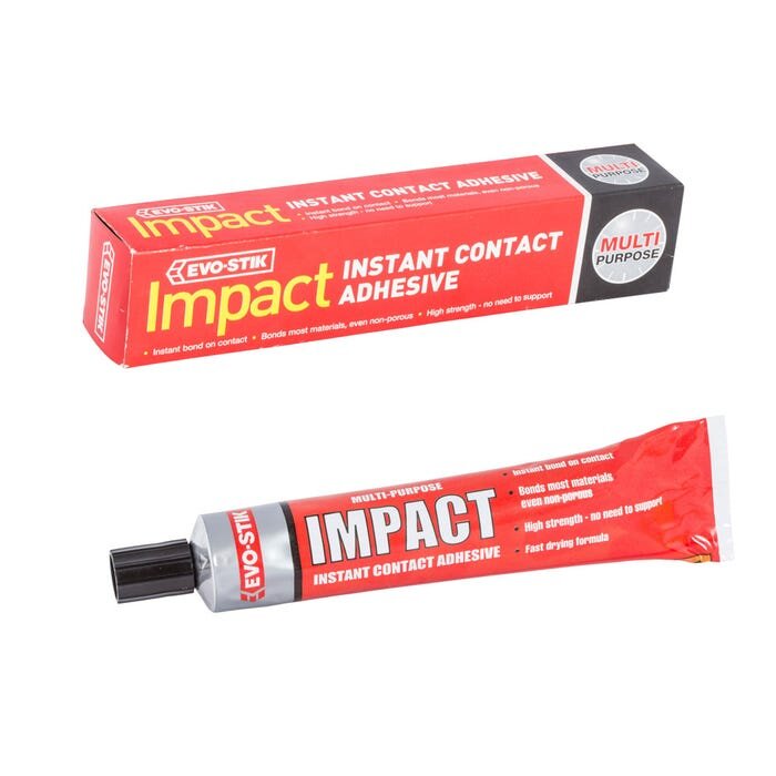 Evo-Stik Impact Adhesive Large Tube 30g is a high strength, multi-purpose adhesive that bonds instantly on contact. It has the power to bond most types of materials, and will even fix non-porous surfaces together e.g. metal to metal