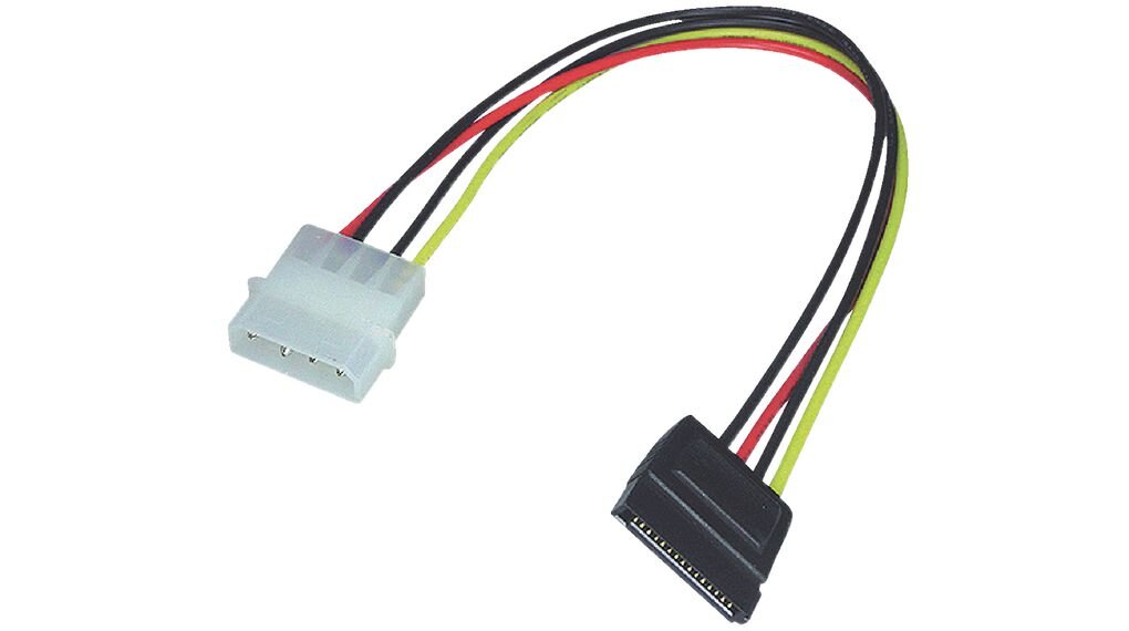 4-Pin Molex to SATA Power Cable Adapter features one 4-pin Molex (LP4) male connector and one female SATA power connector, allowing you to power a Serial ATA hard drive from a conventional LP4 connection, eliminating the need to upgrade the computer power supply for compatibility with the SATA hard drive.
