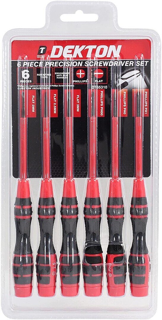DEKTON DT65310 Precision Screwdriver Set, 240 V, Black/Red, Set of 6 Pieces