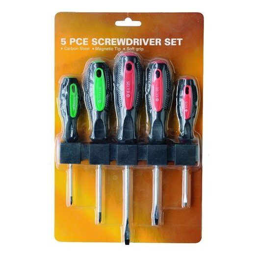 Σετ από 5 μαγνητικά κατσαβίδια από ατσάλι με μαλακή χειρολαβή. Το σετ περιλαμβάνει: